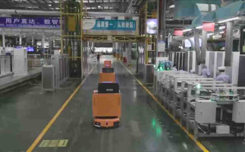 为车载冰箱物流配送打造的智能解决方案,,包含产中物流通过潜伏举升AMR搬运至线边,,产后成品物流智能仓储,,流程包含产中物流智能齐套入库,,线边安灯叫料AMR智能配送至线边,,成品入库、、出库,,通过无人堆高车机器人,,智能仓储管理替代人工作业管理,,,,实现更高存储、、、更高效率、、、更具柔性化的解决方案。。